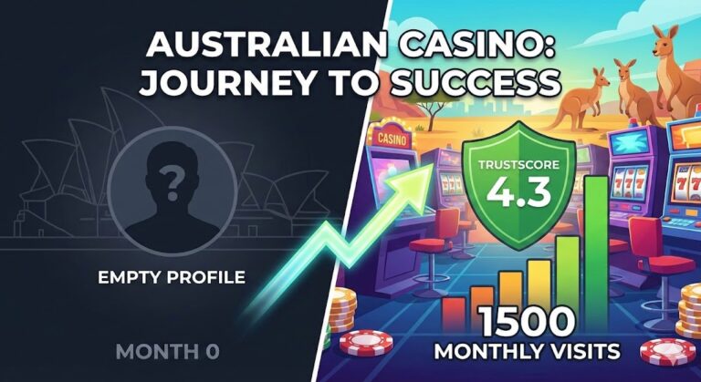 Australian Casino: Path from an empty profile to TrustScore 4.3 and 1500 visits per month from brand search