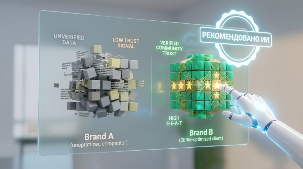 • В алгоритмической сфере платформа является ключевым поставщиком сигналов E-E-A-T. Платформа проверяет законную деятельность бренда и повышает видимость в популярных поисковых системах и ответах ИИ.