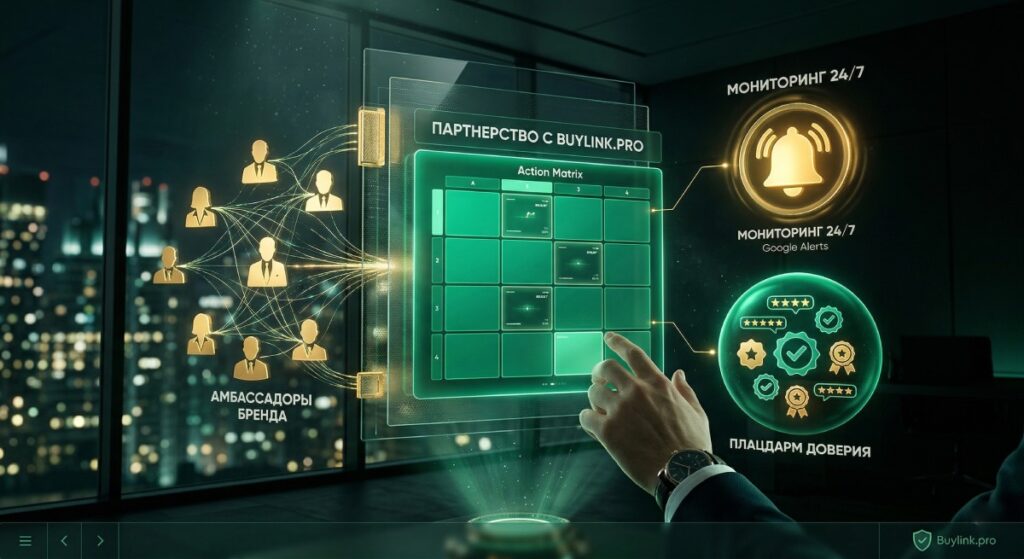 Благонадежность напрямую зависит от качественного SERM. Руководитель компании должен иметь безупречный послужной список, чтобы гарантировать дальнейшее процветание своих проектов. Сервис Buylink.pro помогает восстановить и поддерживать позитивный имидж как компании, так и ее руководителя.
