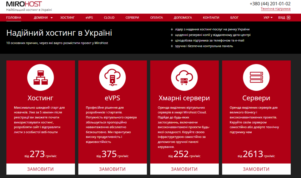 MiroHost также входит в число провайдеров в Украину с высокими техническими показателями скорости и надежности.