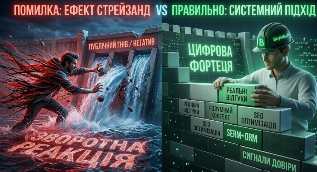 Експерти не рекомендують намагатися самостійно придушувати негативні відгуки. Яка причина цього? Невмілі спроби відновити свою репутацію призведуть до нової хвилі критики. Це називається ефектом Стрейзанд. Експерти Buylink.pro пропонують комплексний підхід до вирішення цієї проблеми: